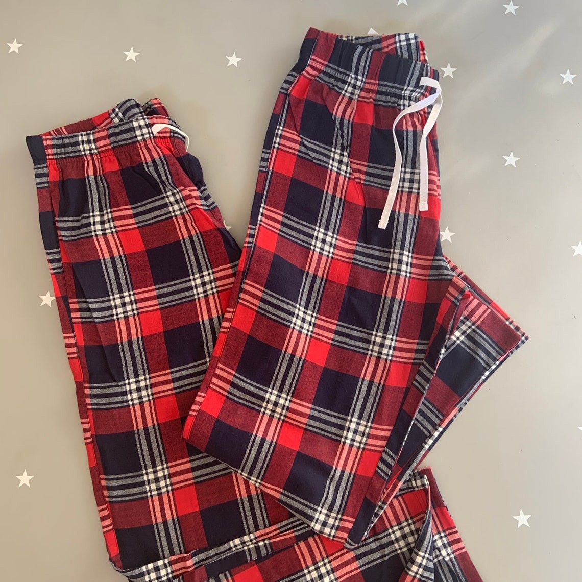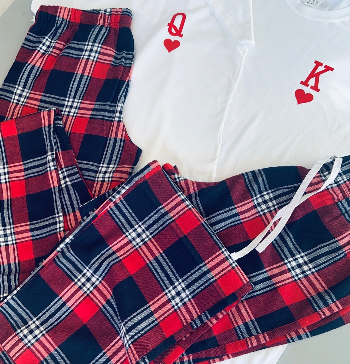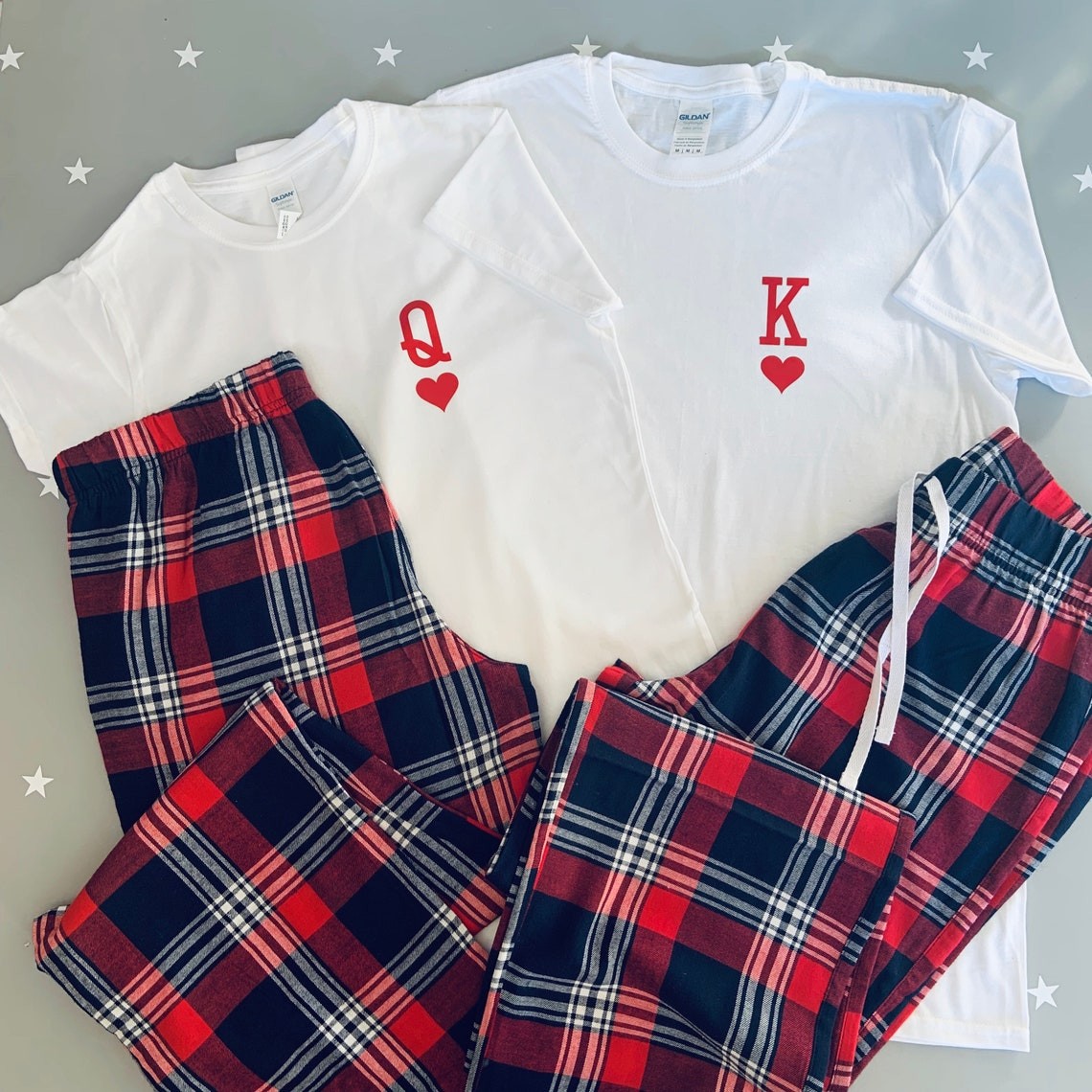 King and Queen of Hearts Matching Couple Pyjamas, Tartan Flannel Set