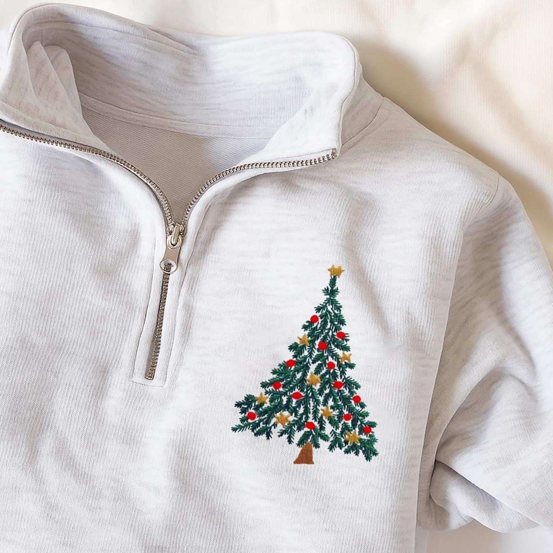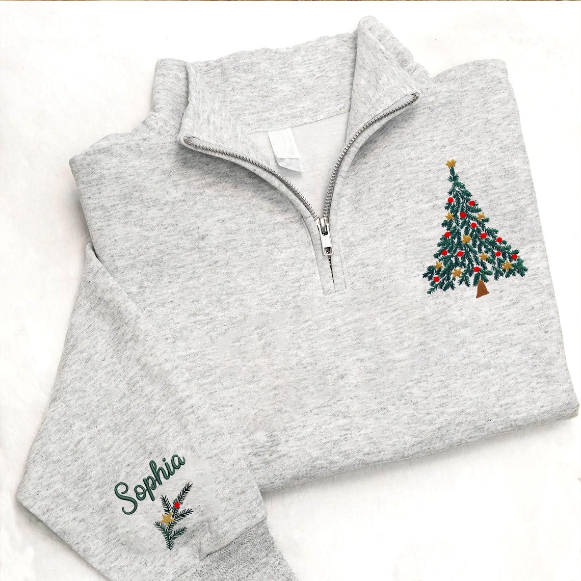 Personalized Christmas Sweatshirt – Custom Embroidered Christmas Tree Quarter Zip Sweatshirt , Christmas Tree Tshirt