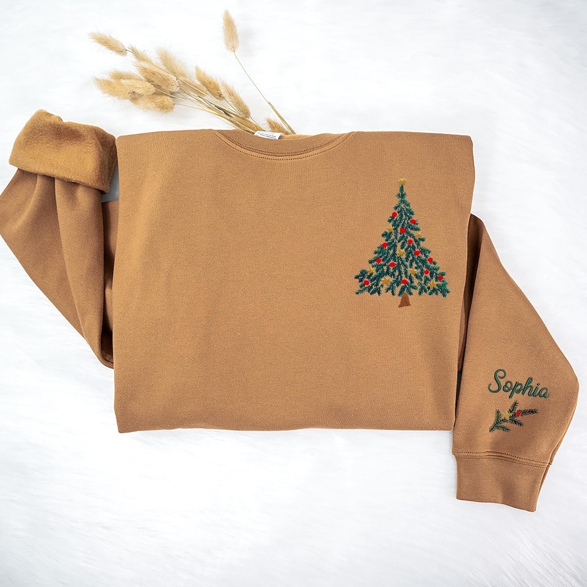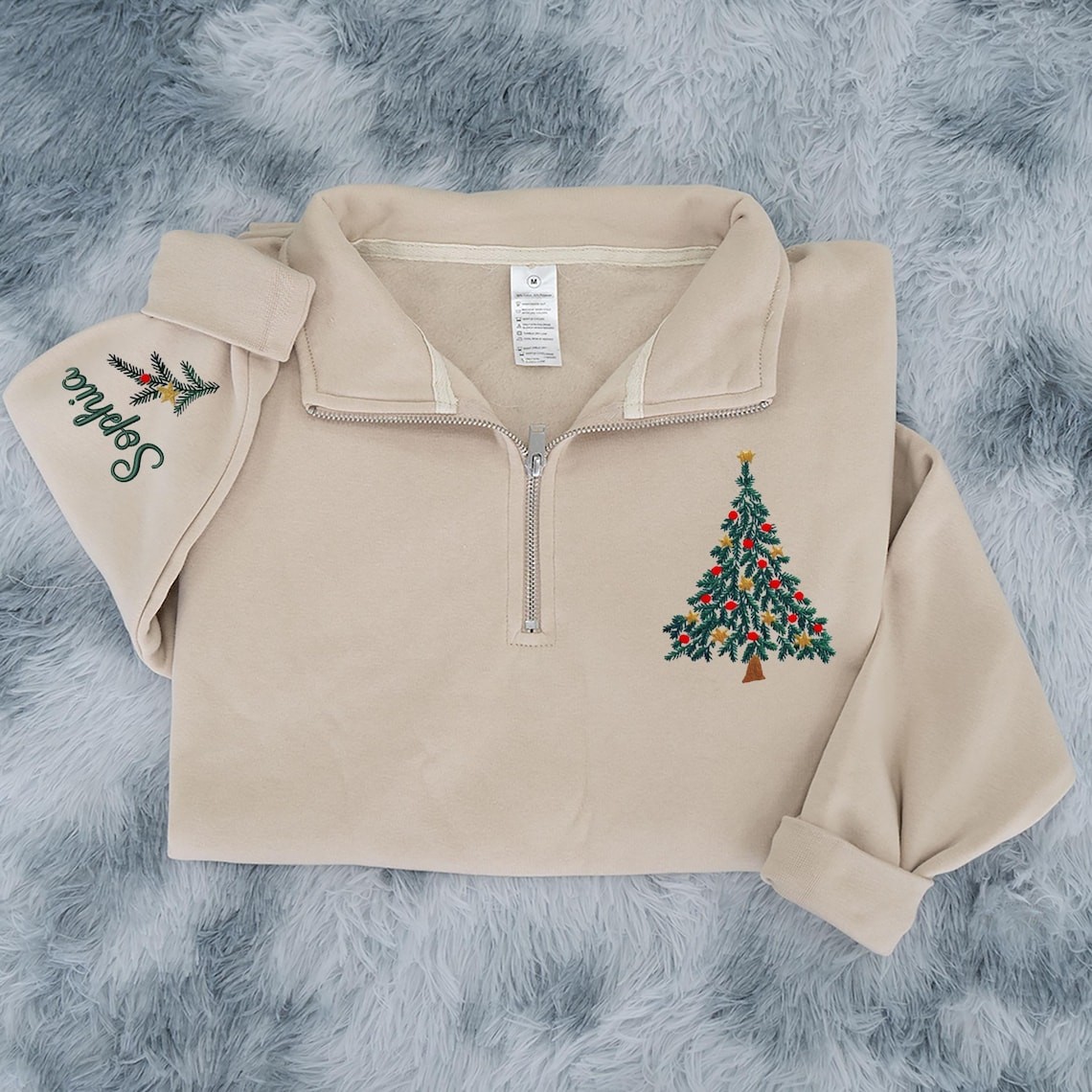 Personalized Christmas Sweatshirt – Custom Embroidered Christmas Tree Quarter Zip Sweatshirt , Christmas Tree Tshirt