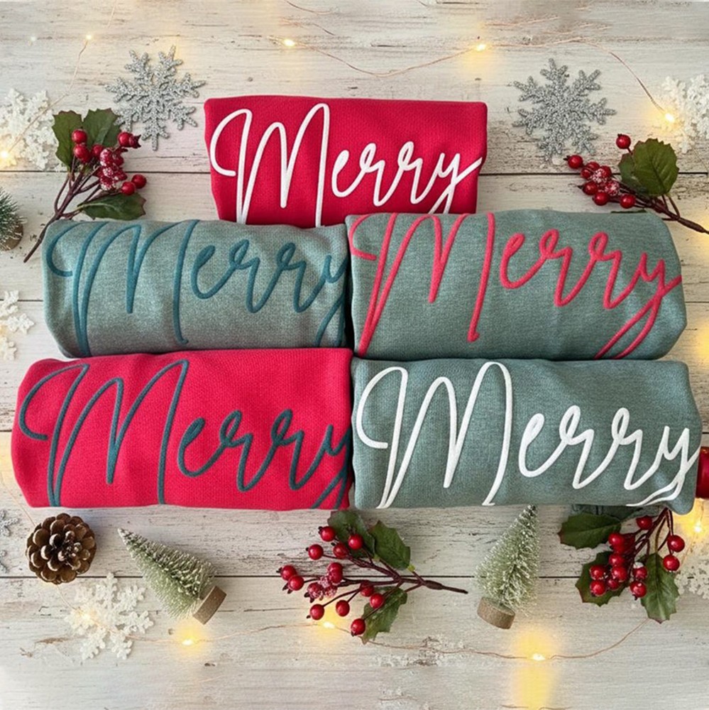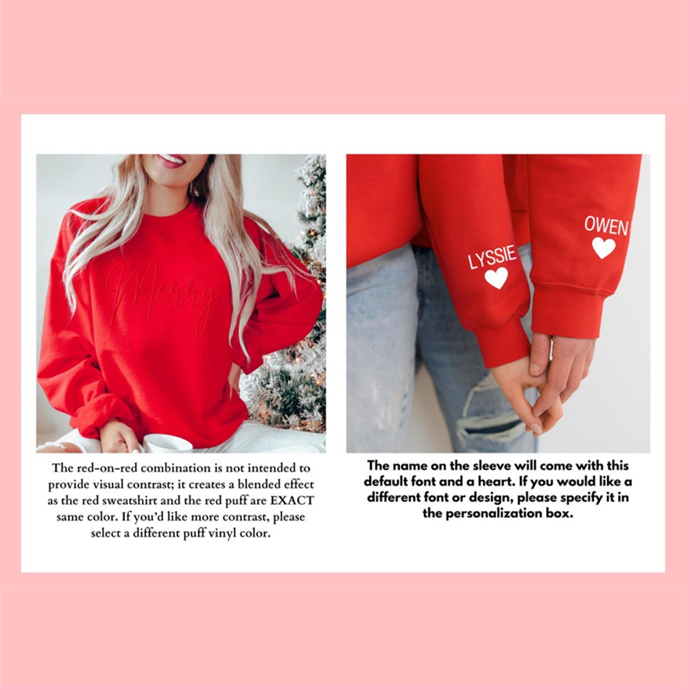 Personalized Christmas Sweatshirt with Name on Sleeve, Puff Letter Winter Sweater, Christmas Crewneck, Family Holiday Sweater, Family Gift