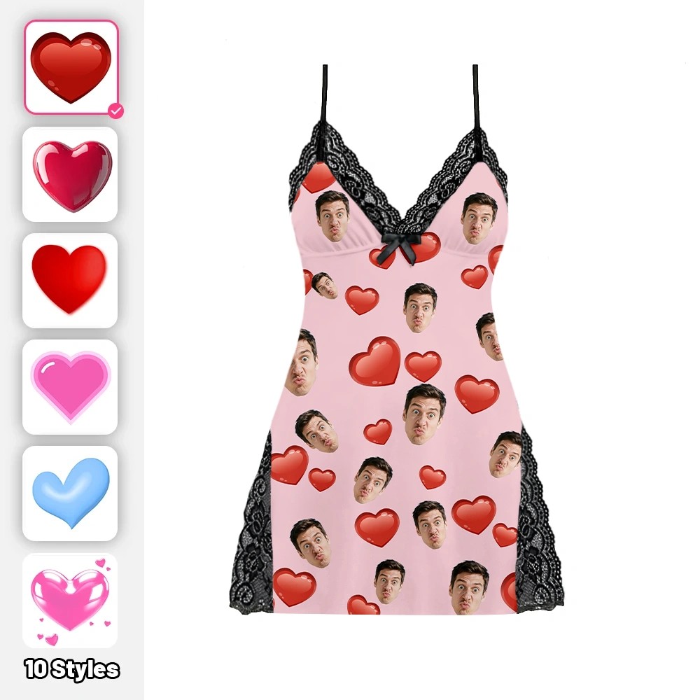 Custom Lace Nightgown Black Base Various Types of Love Valentine's Day Gift for Her