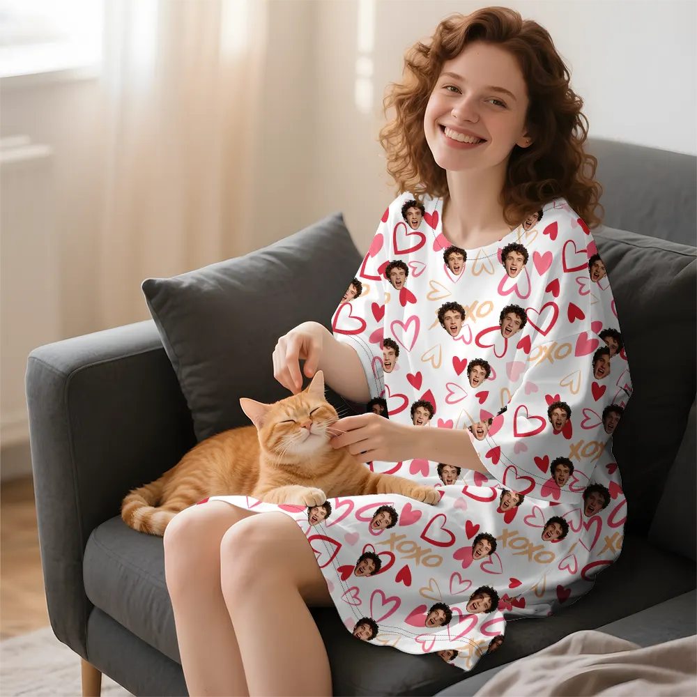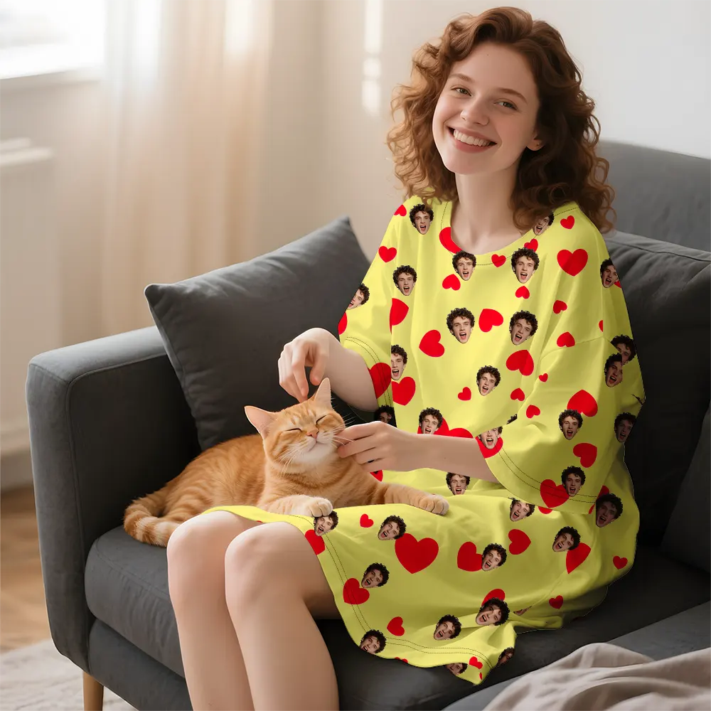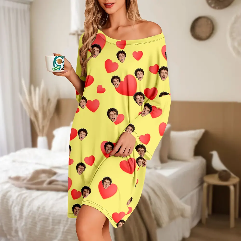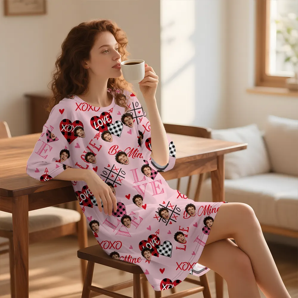 Custom Sleep Dress Candy Pink with Floating Heart Portraits Birthday Valentine's Day Gift Dream Nightgown