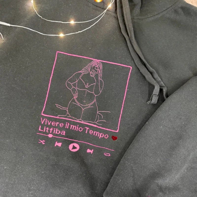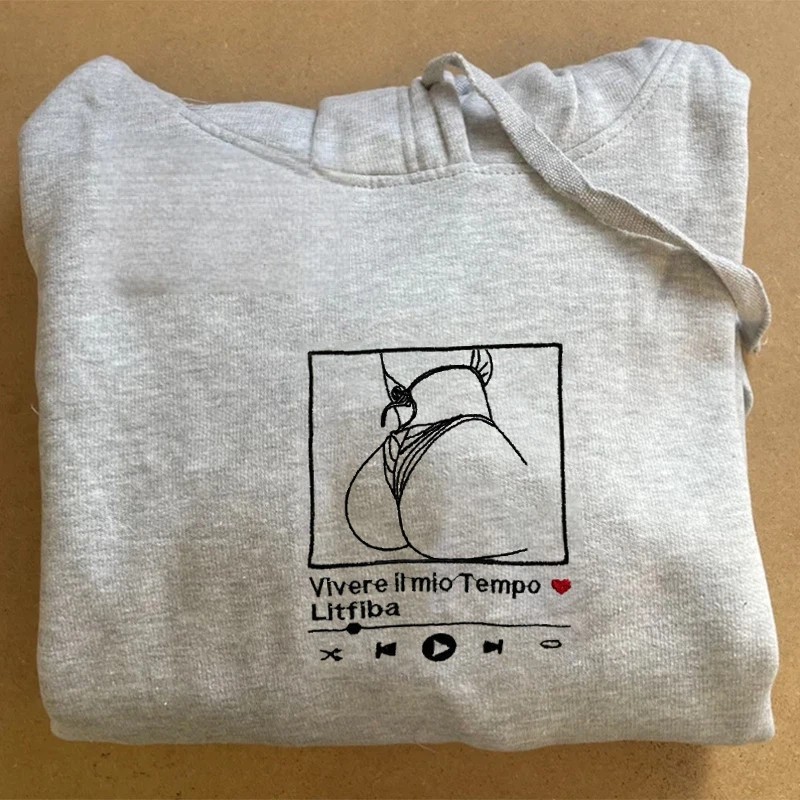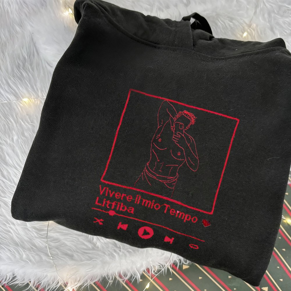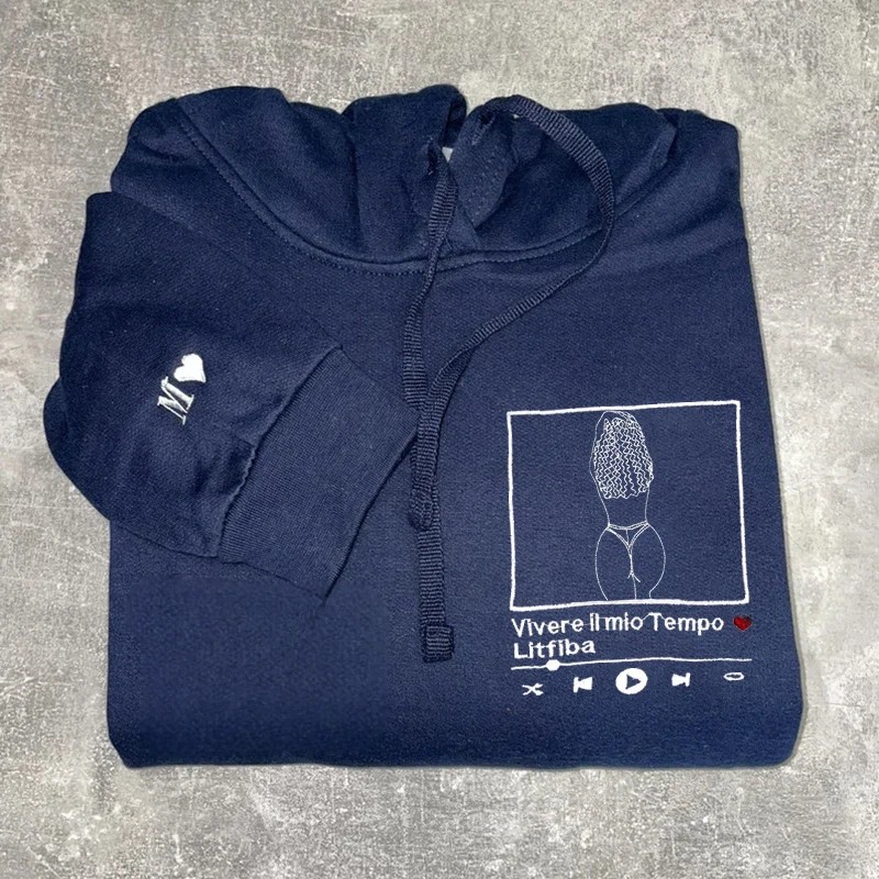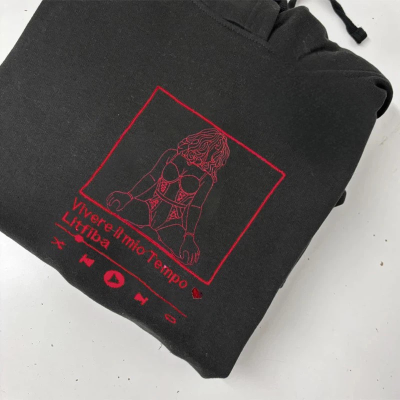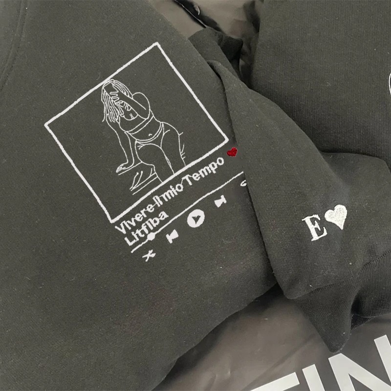 Custom Embroidered Portrait Music Player Sweatshirt – Personalized Sexy Portrait Gift for Him