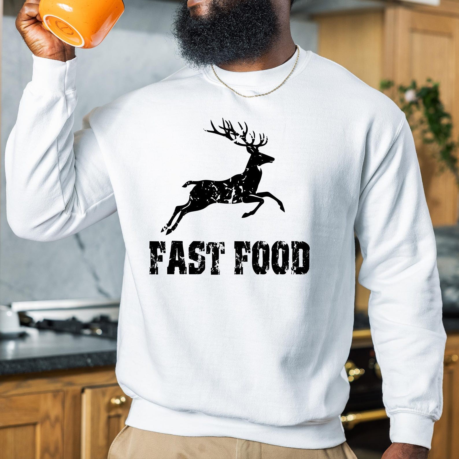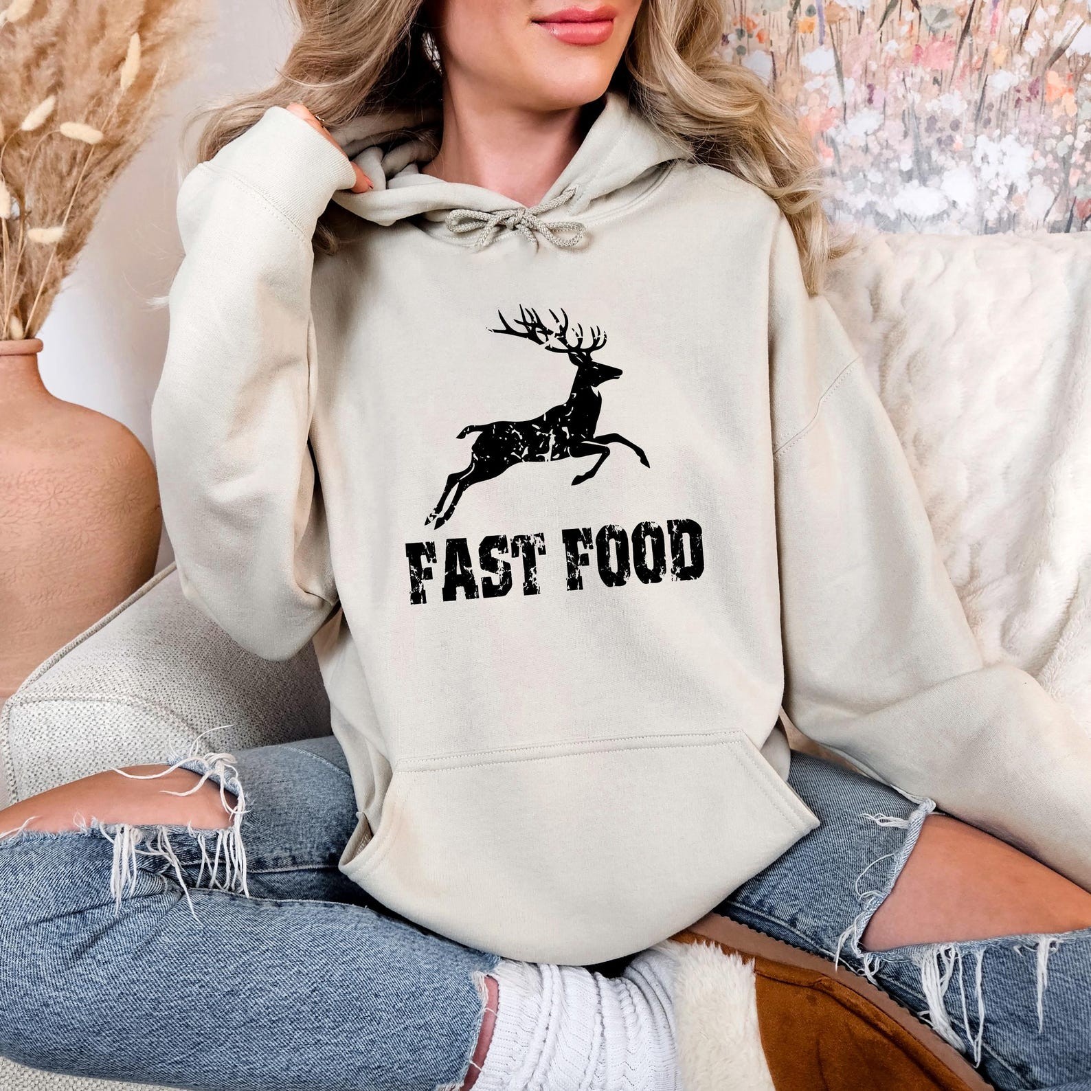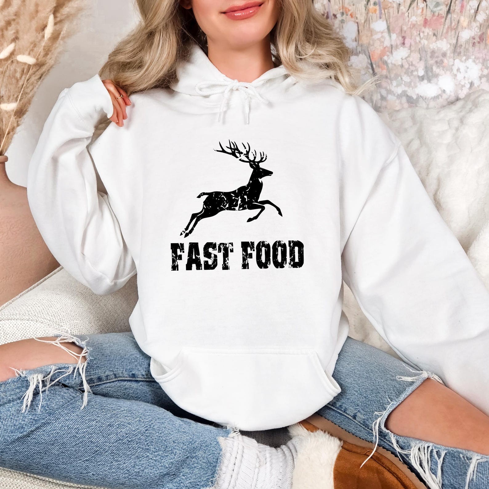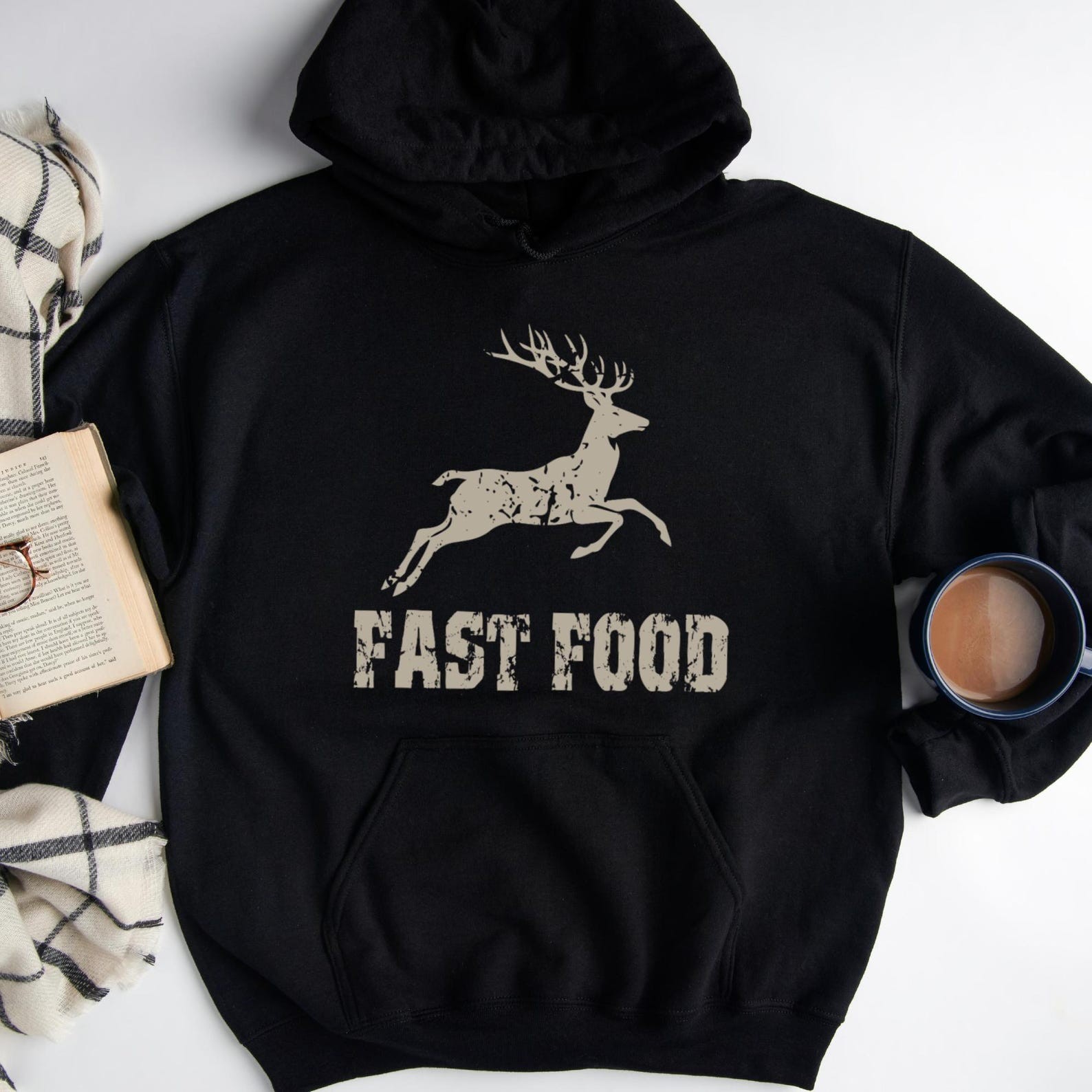 ast Food Deer Hoodie, Funny Joke Hunting Hoodie, Hunting Men Hoodie, Dad Hunter Gift, Deer Hoodie, Rude Offensive Gifts For Hunters Our youth hoodies are designed with safety in mind. To eliminate the risk of suffocation, they do not feature drawstrings. PRODUCT DETAILS Indulge in our meticulously crafted sweatshirts and hoodies, where every detail is carefully considered and double-needle stitching ensures lasting durability. Embrace the cozy, unisex design, expertly crafted from a blend of 50% cotton and 50% polyester for the ultimate comfort experience. CARE INSTRUCTIONS Maintain the pristine condition of your garment with ease: - Machine wash inside out on a delicate cycle with low temperature. - Tumble dry on low heat for optimal results. - Avoid bleach, dry cleaning, and ironing directly on the design to preserve its integrity.