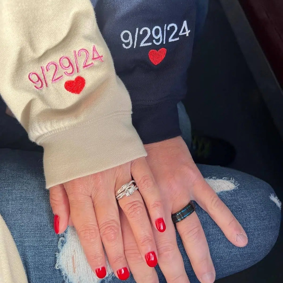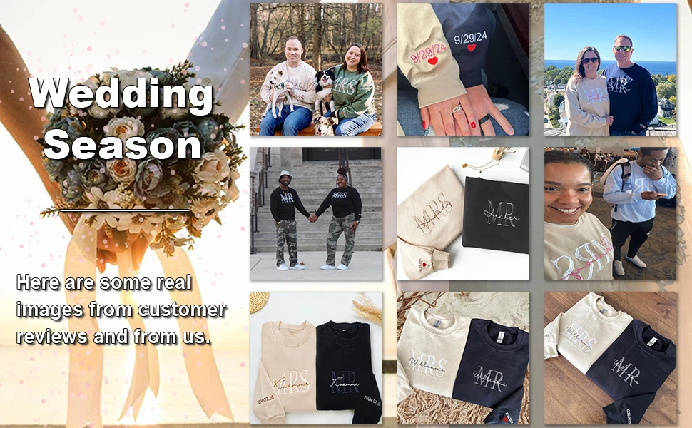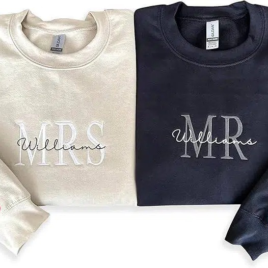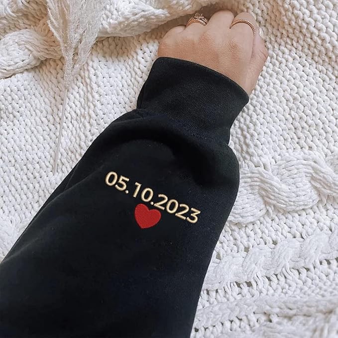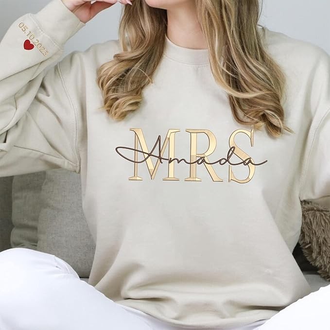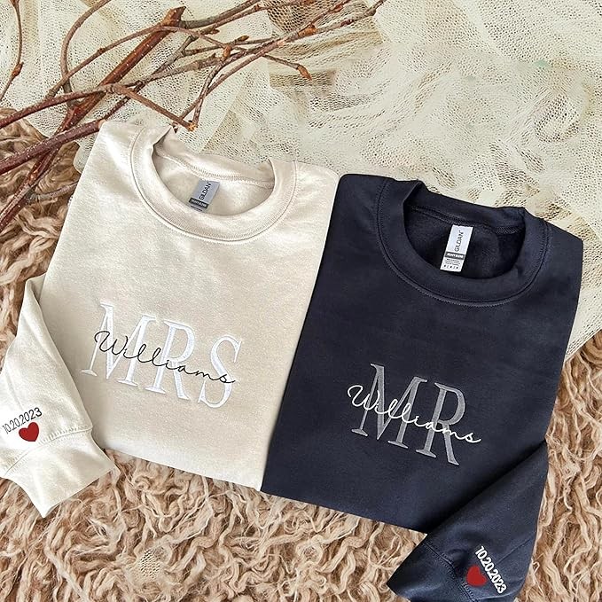 Custom Embroidered Mr & Mrs Sweatshirt & Hoodie, Personalized Couple Names, Custom Anniversary Date On Sleeve With Heart, Gifts For Wife, Husband, Gift For Anniversary, Couple Gifts