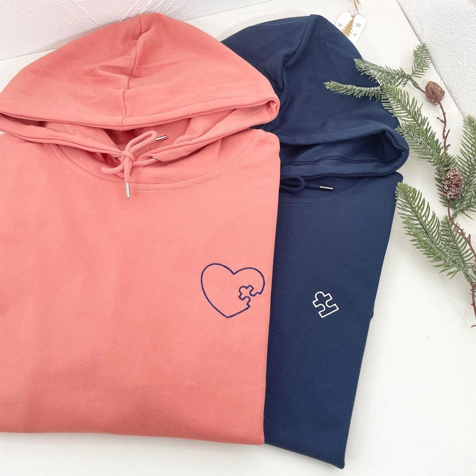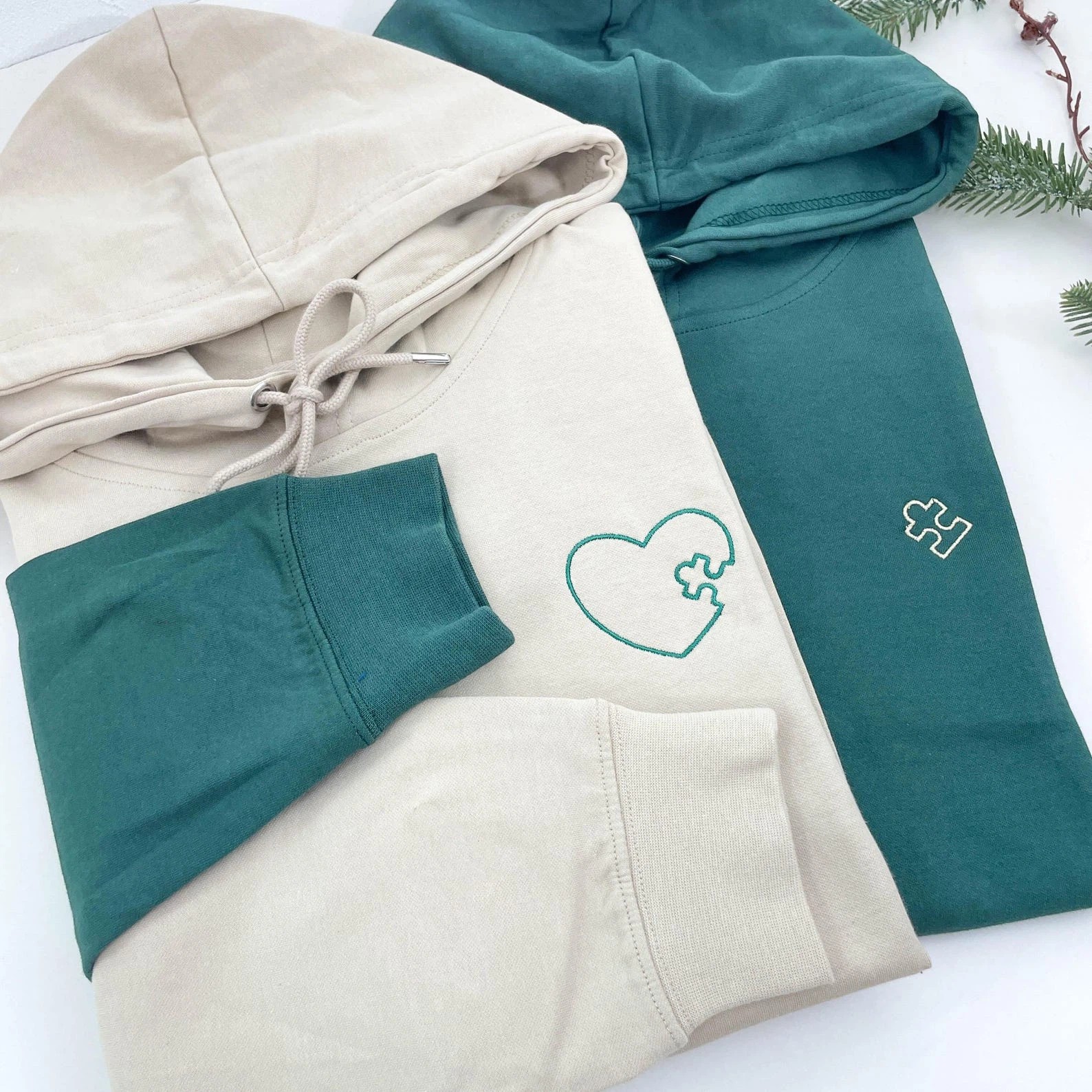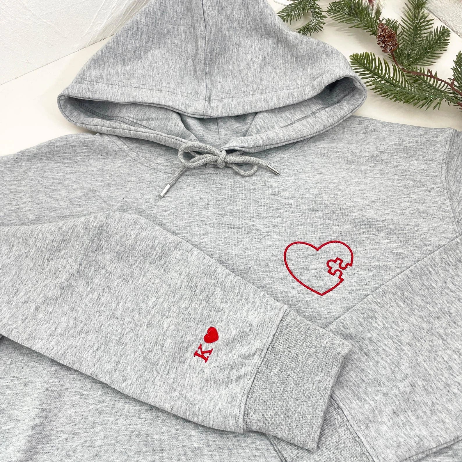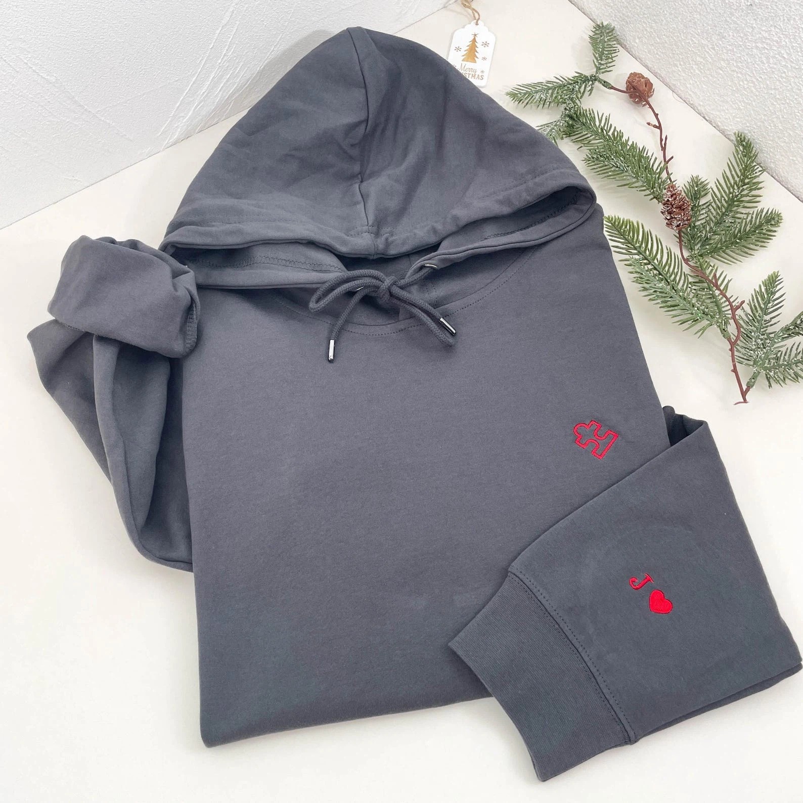 Embroidered Heart and Puzzle Piece Matching Couple Sweatshirt | Initial with Heart On Sleeve | 1st Anniversary Gift | Valentine Gift for Him