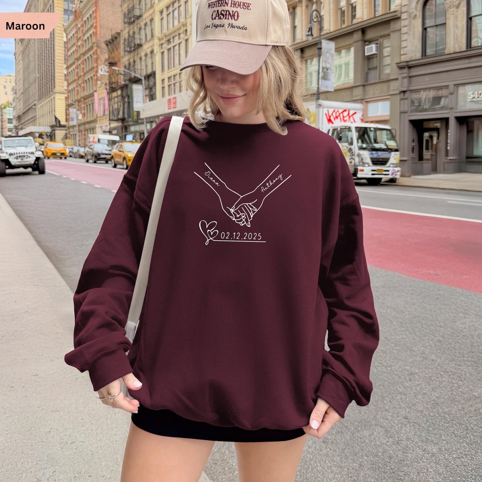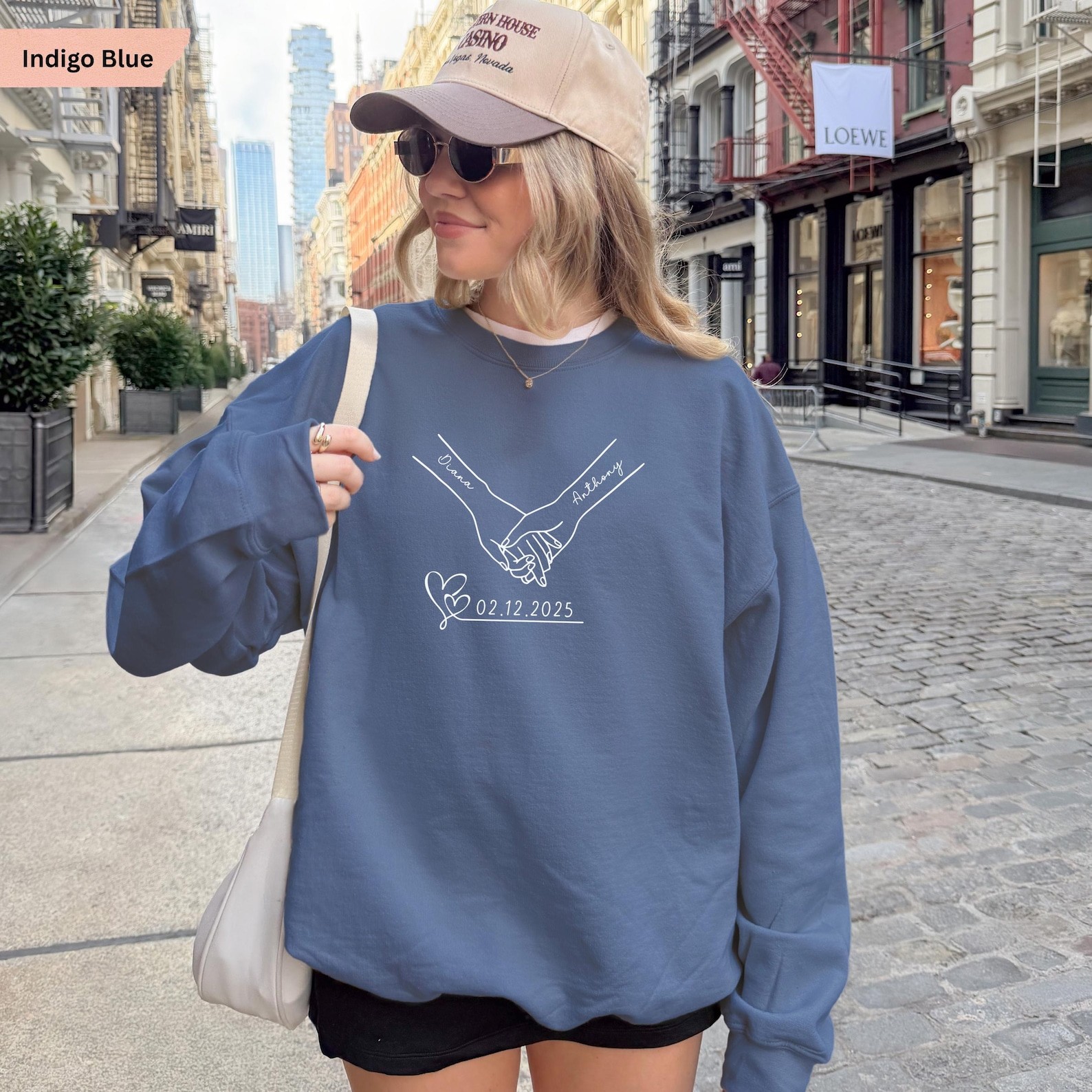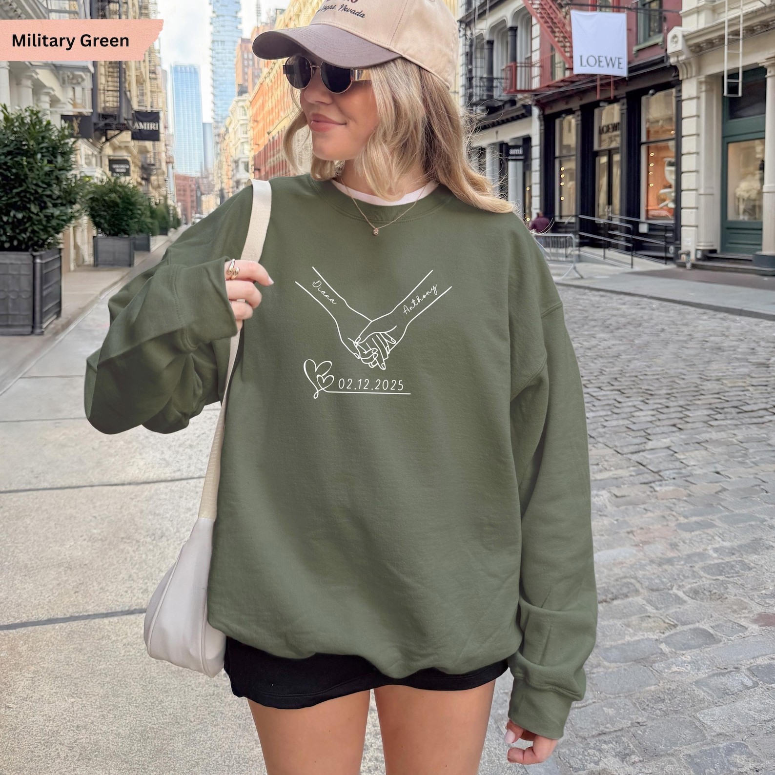 Personalized Couple Sweatshirt, Holding Hands Sweater, Matching Couples Gift, Anniversary Date, Valentine Day Gift, Custom Name Sweater