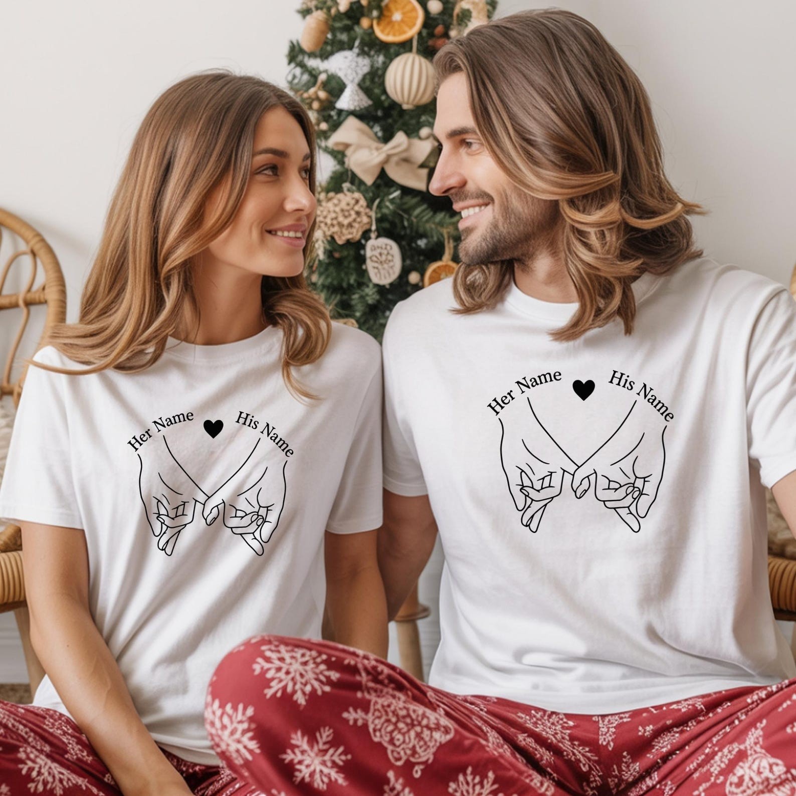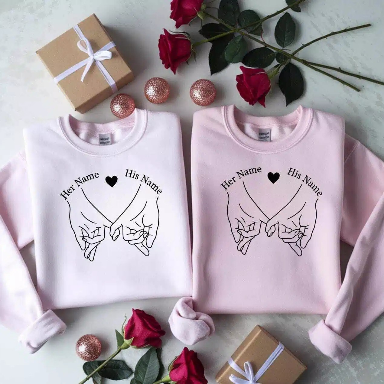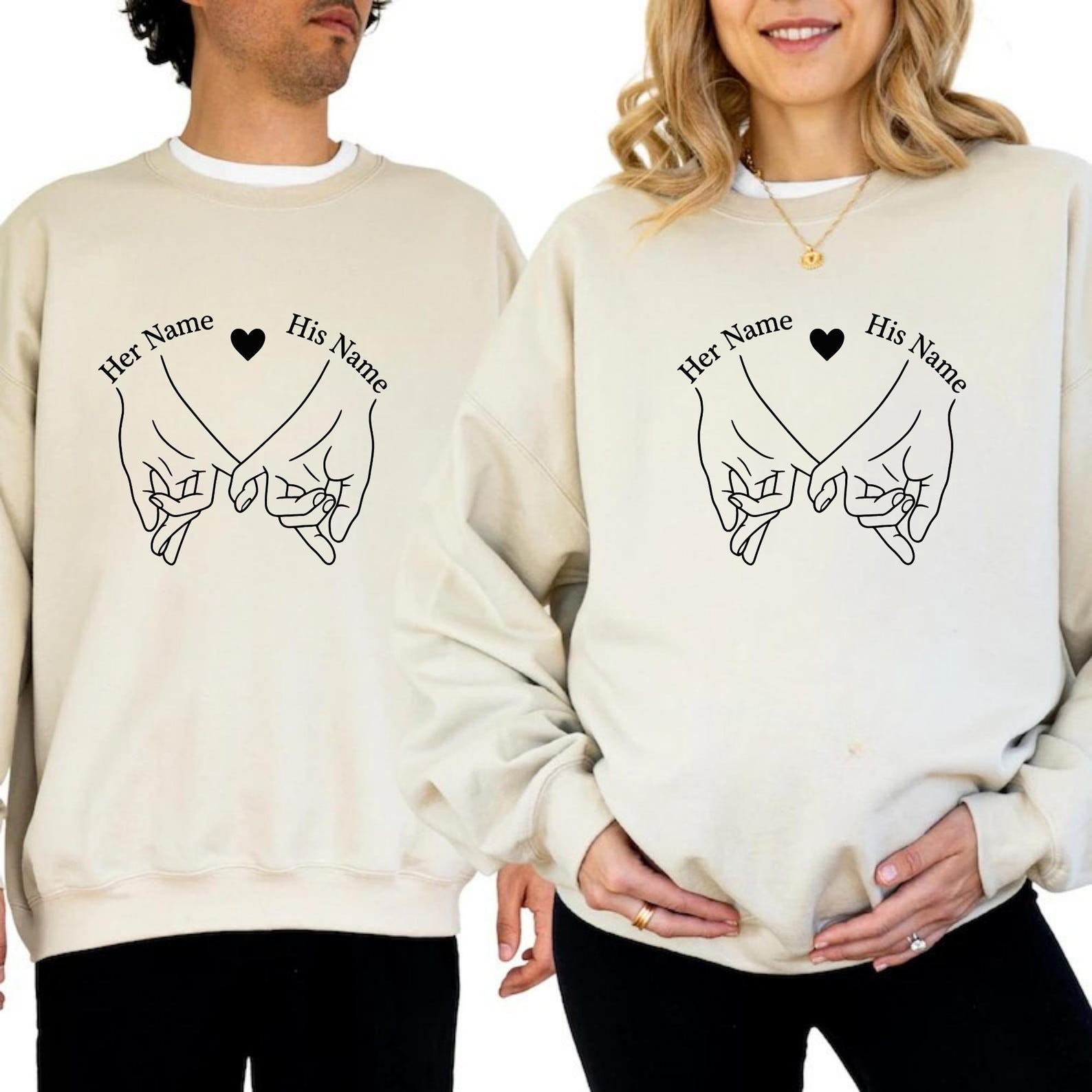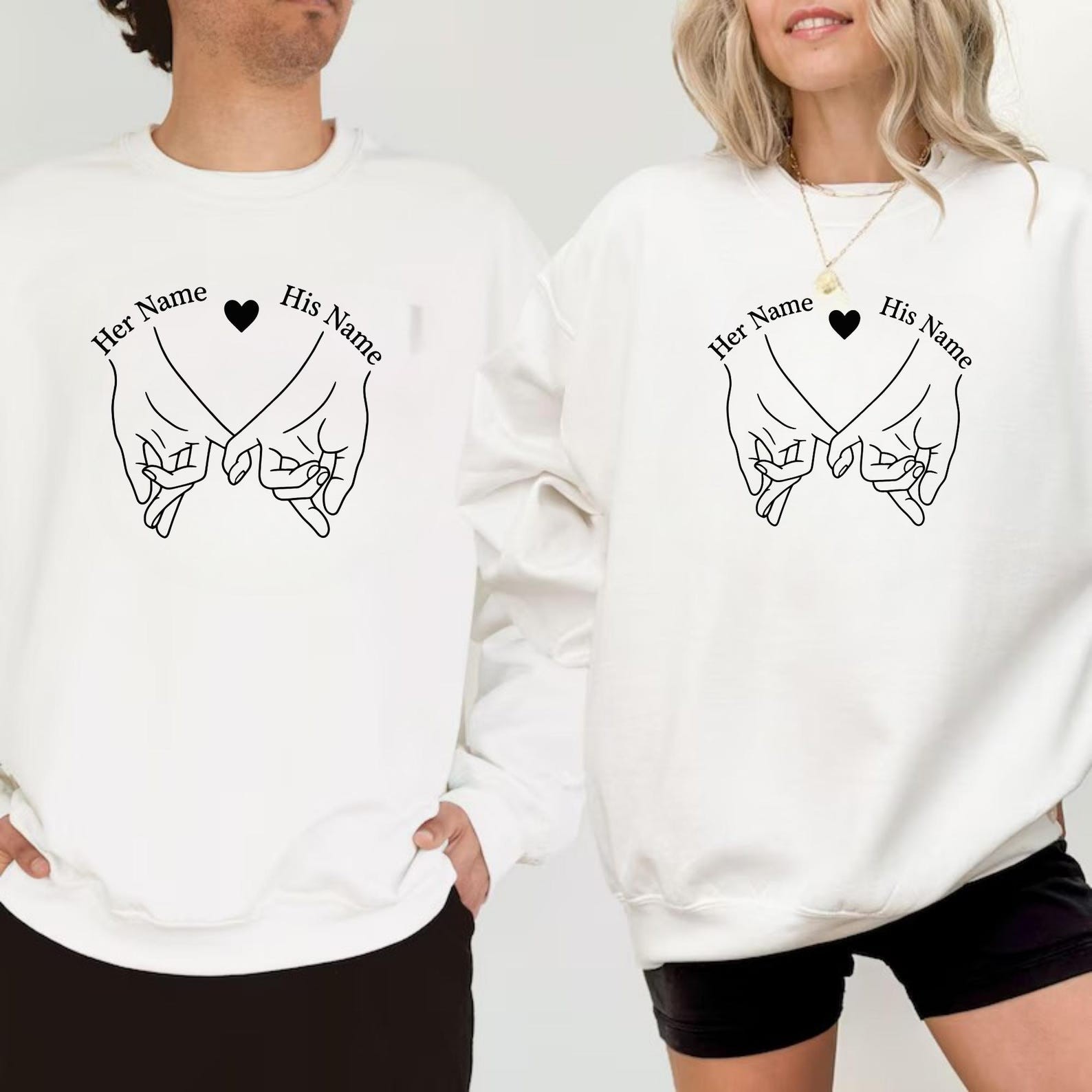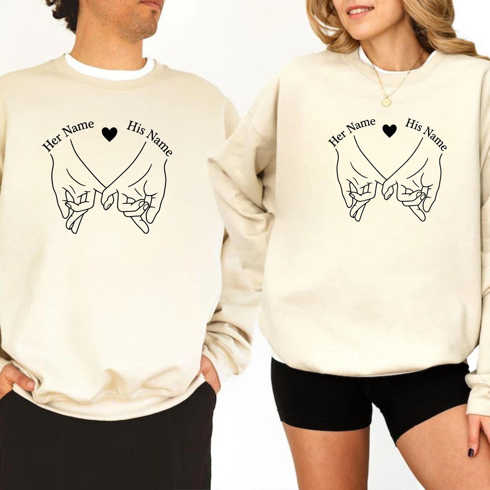 Personalized Couples Sweatshirt Set, Matching Couples Shirts, Custom His and Her Names, Promise Hands Design, Anniversary Gift