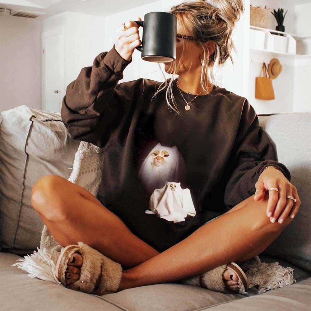 Vintage Ghost Kitten Shirt Sweatshirt Gift For Halloween